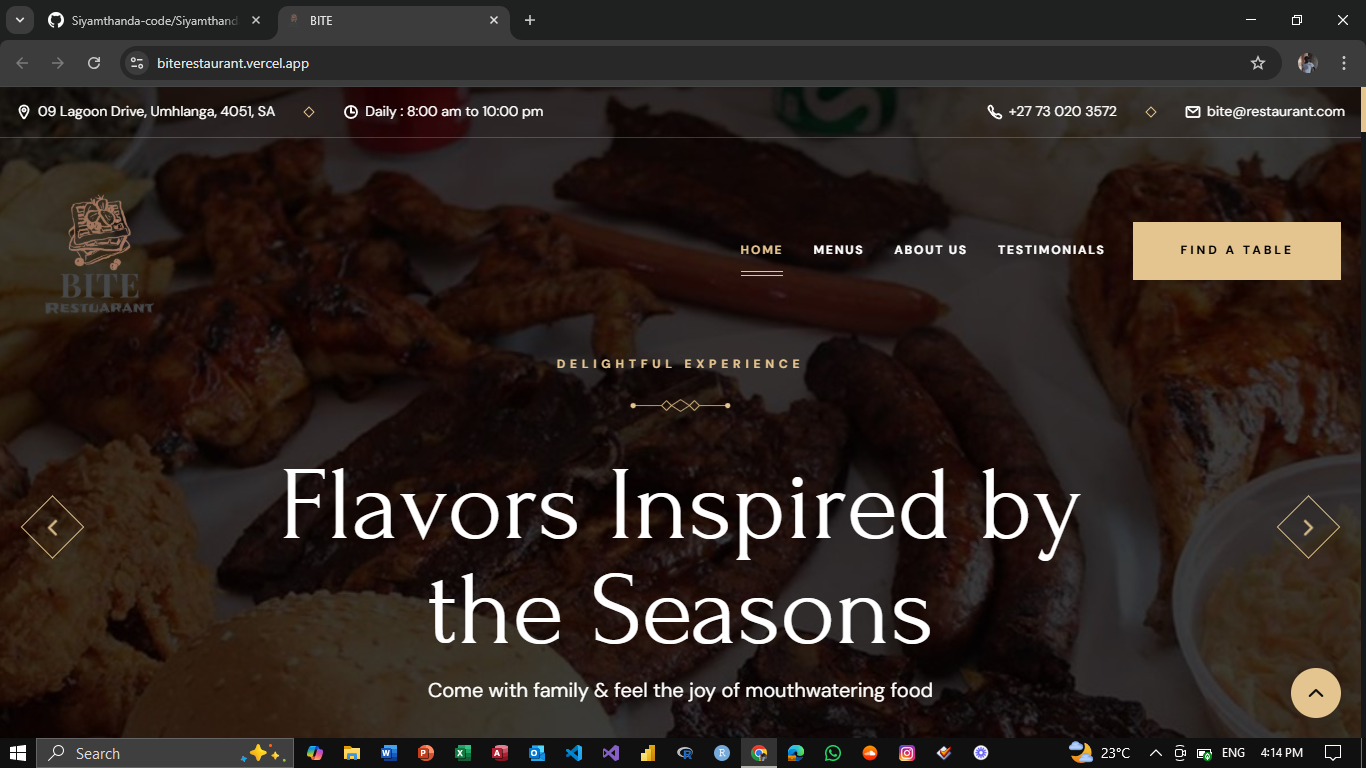 A web application designed for a local restaurant that allows for users to reserve tables and view menu options seamlessly.