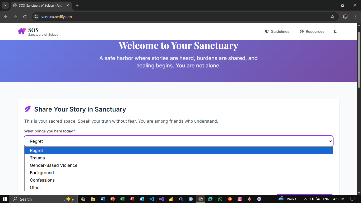 A safe, anonymous online support community where people can share their stories, struggles, and experiences with others who understand.