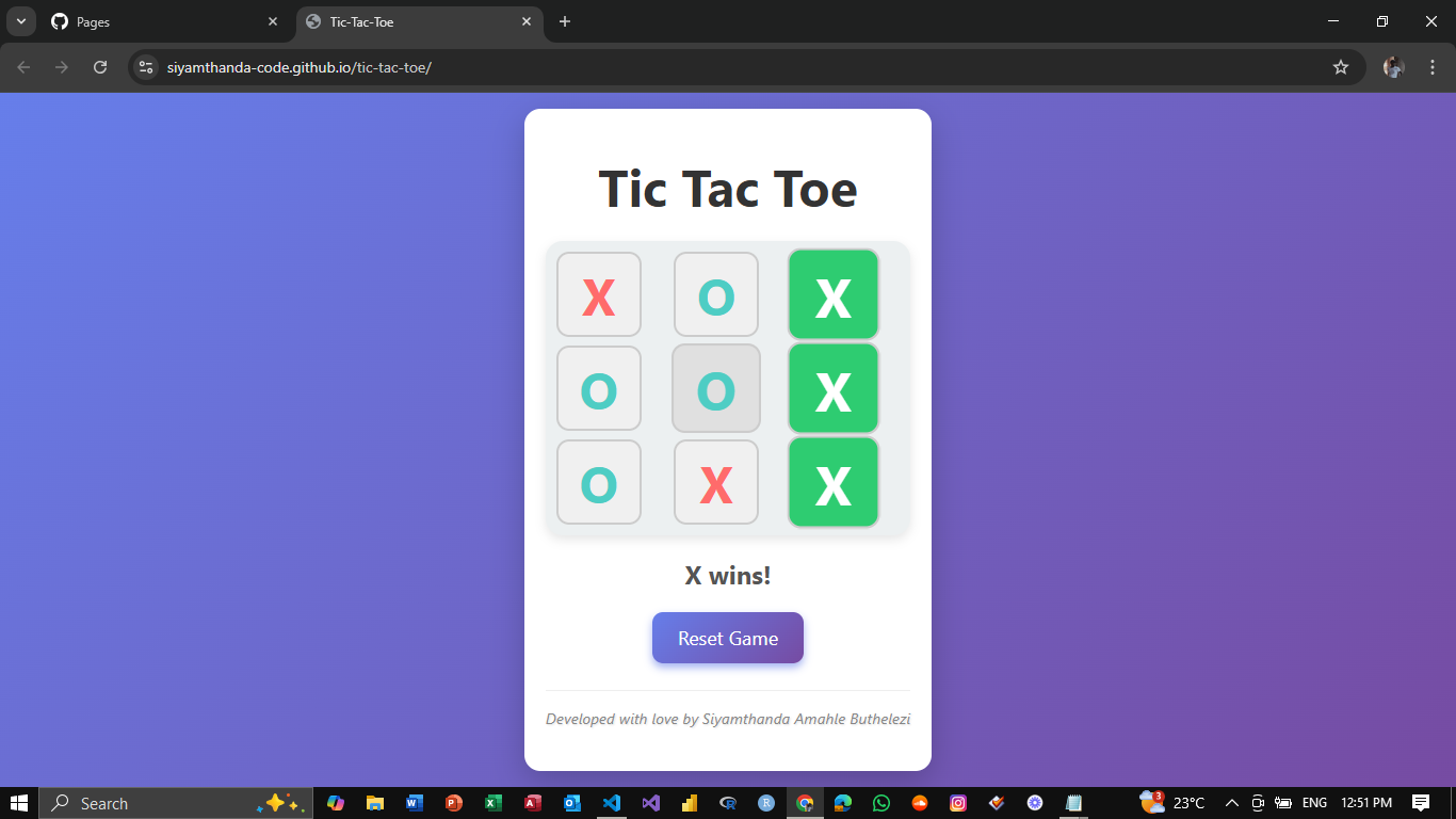 A simple, interactive, two player Tic-Tac-Toe game with a clean and responsive design.